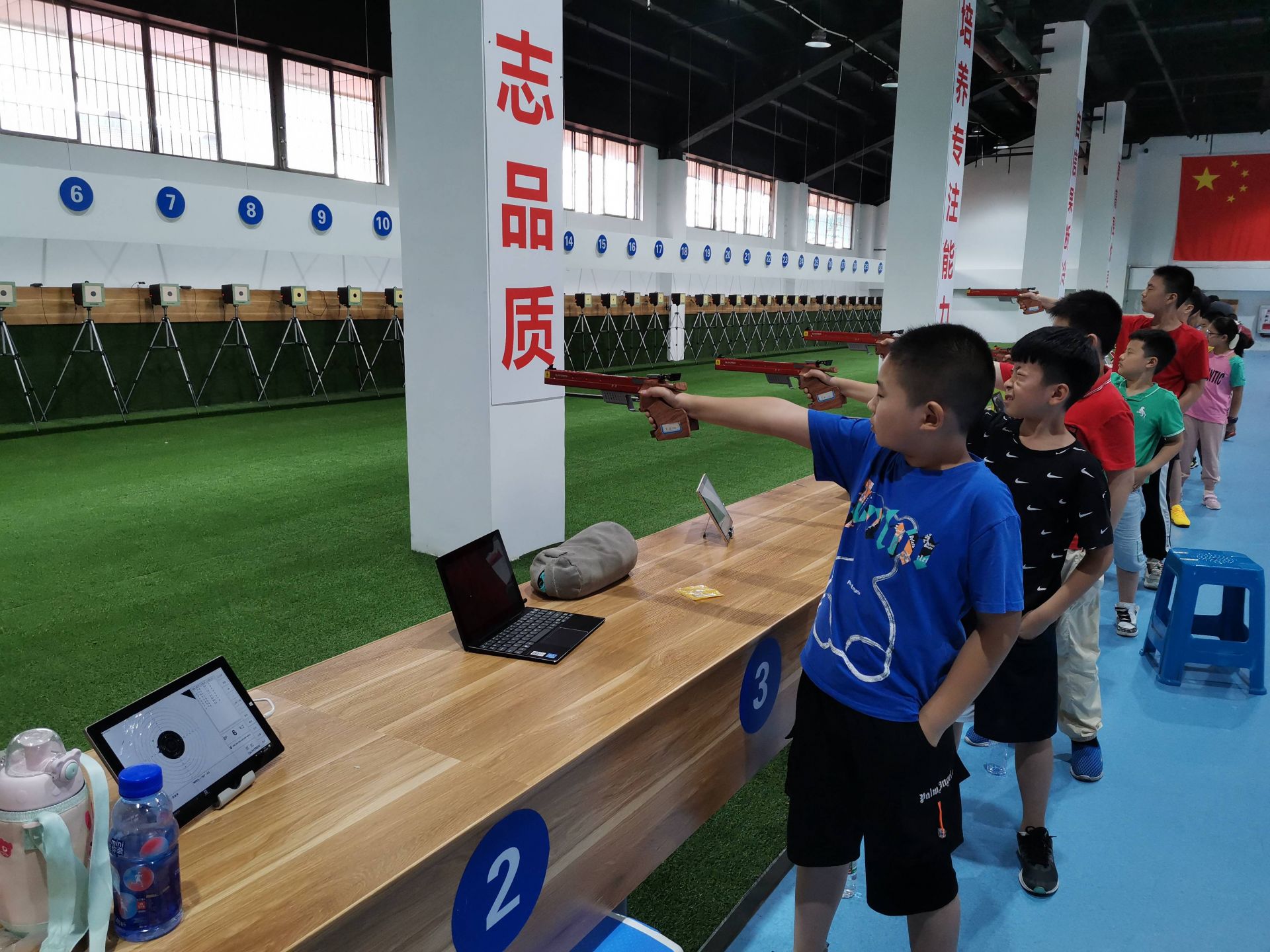 “在电视上看射击比赛就感觉运动员打枪特别帅,我也想像他们一样拿金牌。”“好玩,特别是打中靶心的时候就好开心。”“感觉比电视上难多了,手一抖就打偏了。”孩子们纷纷说出了自己的射击“初体验”。